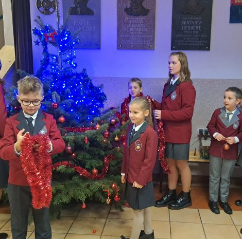 10 grudnia 2025r. Samorząd Uczniowski zorganizował ubieranie szkolnej choinki pod okiem opiekuna SU, Agnieszki Miśkiewicz.