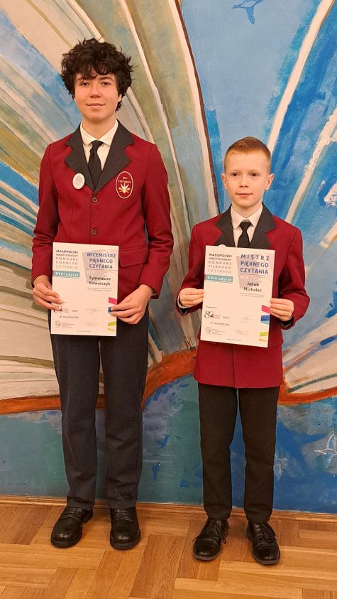 3 grudnia 2025r. W Wojewódzkiej Bibliotece Publicznej w Krakowie odbyła się Gala XVIII edycji Małopolskiego Konkursu Pięknego Czytania. Mistrzem Czytania w kategorii klas I-III został Jakub Michalec, a w kategorii klas VII-VIII Wicemistrzem Czytania Tymoteusz Kowalczyk.