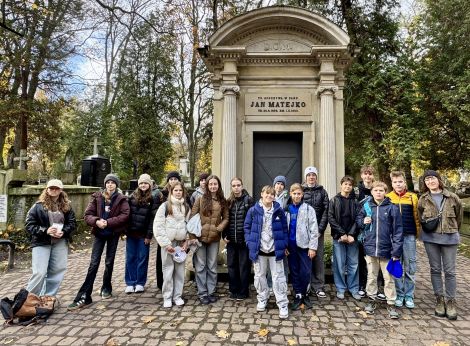 29 października 2025r. Uczniowie kl. VII B udali się na spacer z przewodnikiem  szlakiem zasłużonych krakowian. Uczniowie zobaczyli m.in. pomniki Piotra Skargi i Józefa Dietla, domy Jana Długosza i  Jana Matejki, odwiedzili pl. Mariacki (dawny cmentarz przykościelny), kryptę przy kościele św. Piotra i Pawła czy kamienicę przy Rynku, w której nocował Tadeusz Kościuszko. Na koniec oddano hołd wielkim krakowianom pochowanym na Cmentarzu Rakowickim symbolicznie paląc znicze na ich grobach (byli to m.in. Stanisław Matejko, Wisława Szymborska, Piotr Skrzynecki, Helena Modrzejewska, Marek Grechuta, Zbigniew Wodecki, Tadeusz Kantor). Uczniom towarzyszyły
