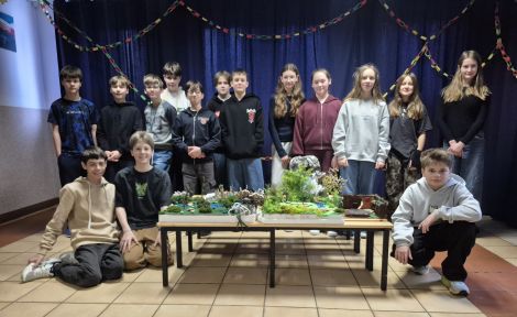 , stworzyła makiety, które można podziwiać w holu szkoły.