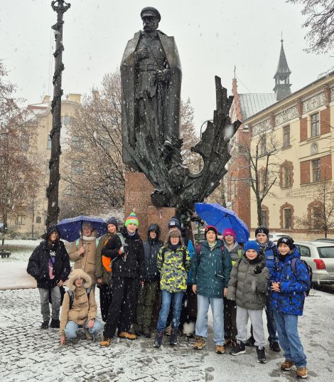 29 października 2025r. Uczniowie kl. VII B udali się na spacer z przewodnikiem szlakiem zasłużonych krakowian. Uczniowie zobaczyli m.in. pomniki Piotra Skargi i Józefa Dietla, domy Jana Długosza i Jana Matejki, odwiedzili pl. Mariacki (dawny cmentarz przykościelny), kryptę przy kościele św. Piotra i Pawła czy kamienicę przy Rynku, w której nocował Tadeusz Kościuszko. Na koniec oddano hołd wielkim krakowianom pochowanym na Cmentarzu Rakowickim symbolicznie paląc znicze na ich grobach (byli to m.in. Stanisław Matejko, Wisława Szymborska, Piotr Skrzynecki, Helena Modrzejewska, Marek Grechuta, Zbigniew Wodecki, Tadeusz Kantor). Uczniom towarzyszyły Barbara Pastuszczak i Agnieszka Miśkiewicz.